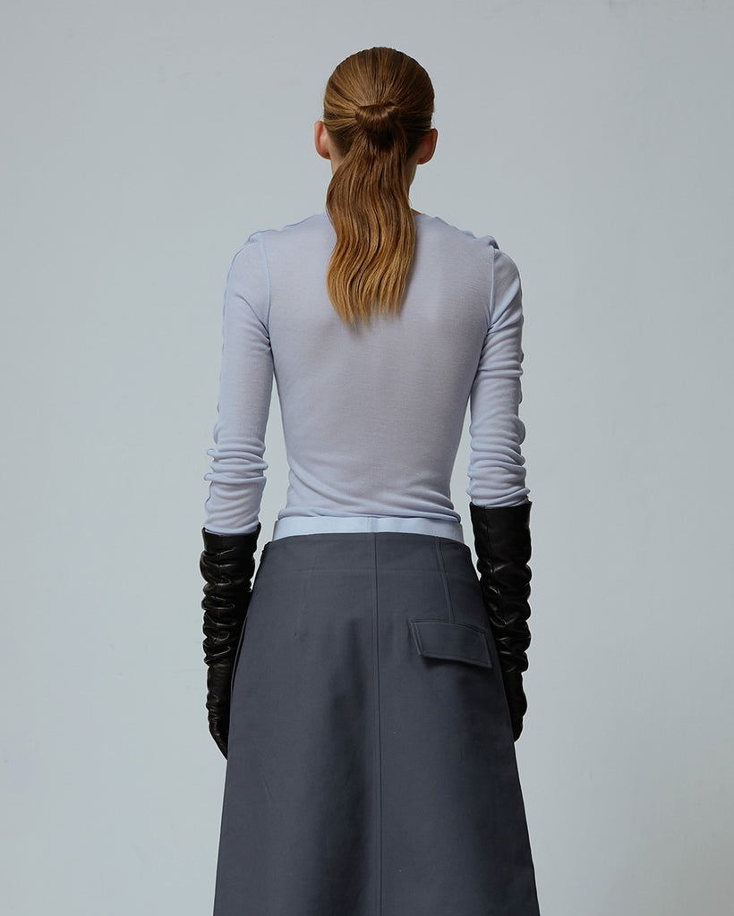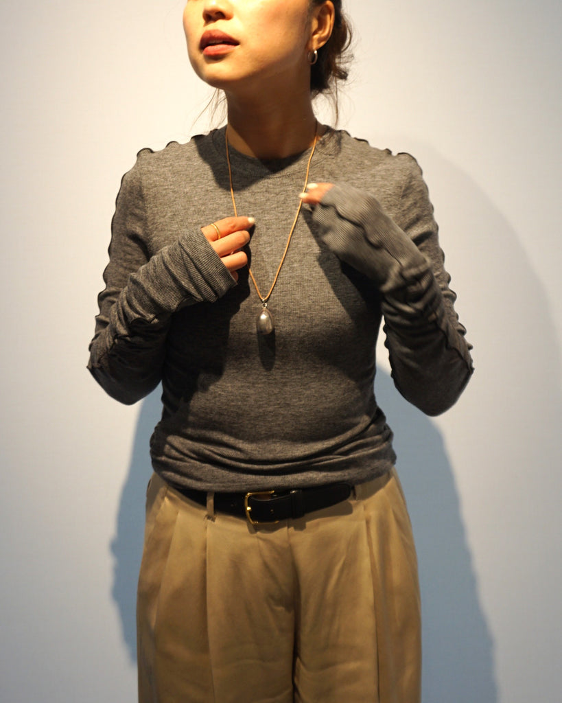 エクストラロング丈の袖は着用時に自然なギャザーを生み出し、コーディネートにさりげなく個性を添えて、どこか余裕のあるスタイルを実現。