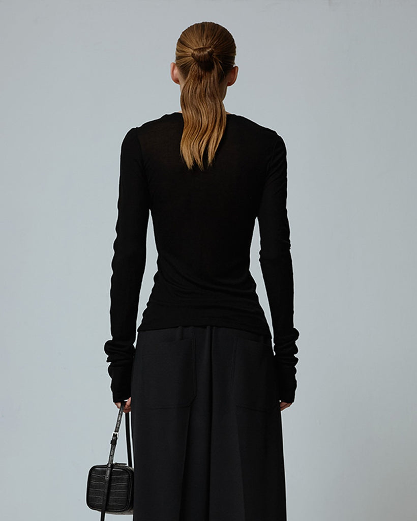 肌なじみのいいリヨセルを使ったLINEロングスリーブトップス。