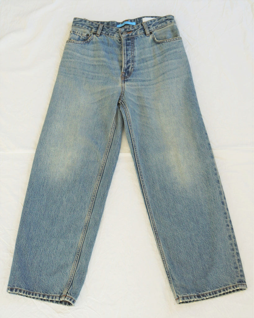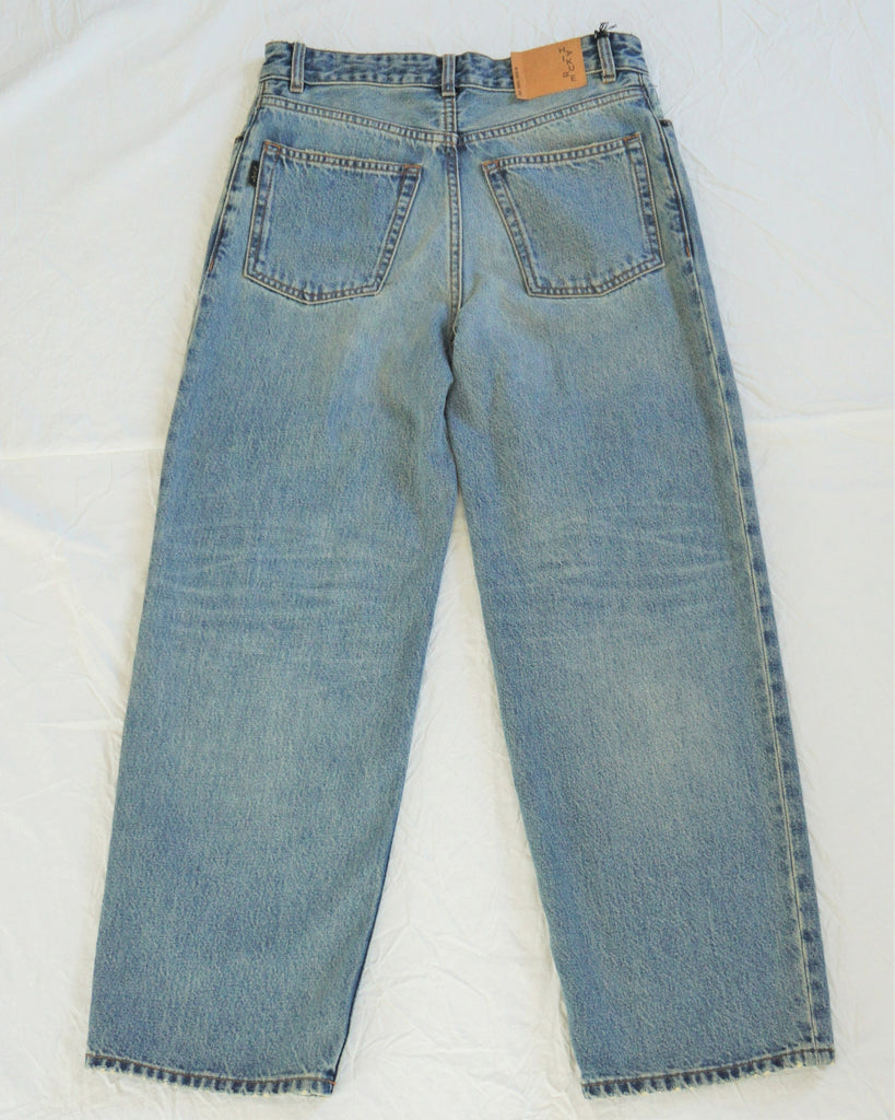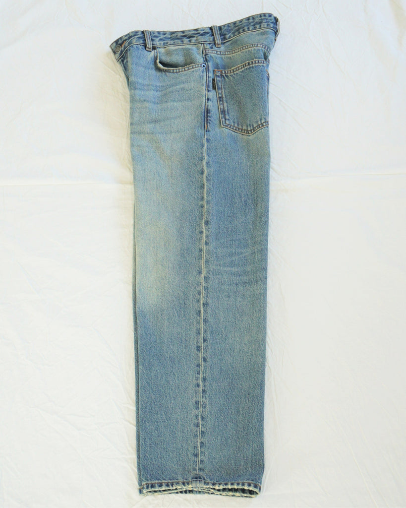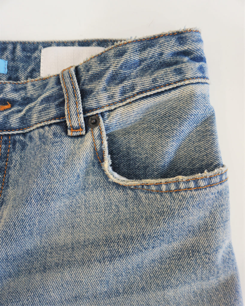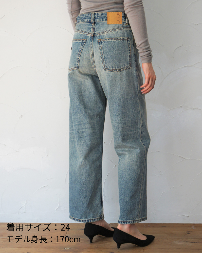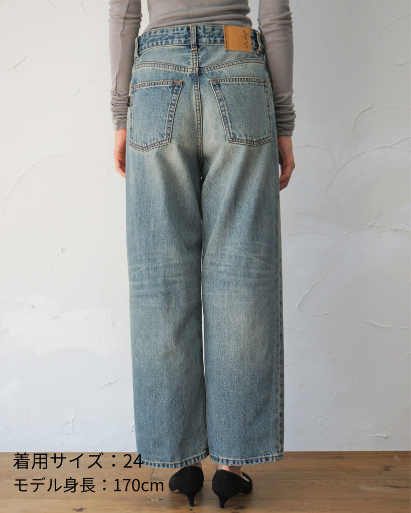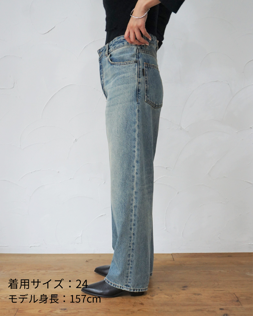 スモーキーなブルーのDIRTY BLUEカラーは明るさと落ち着きを兼ね備えた独特の色合いを持っています。濃色デニムのような引き締まった印象ではなく、柔らかくナチュラルな雰囲気を演出。カジュアルながらも落ち着いた印象を与え、コーディネートに鮮やかさを加えつつも地味になり過ぎないため、幅広いスタイルに合わせやすいです。