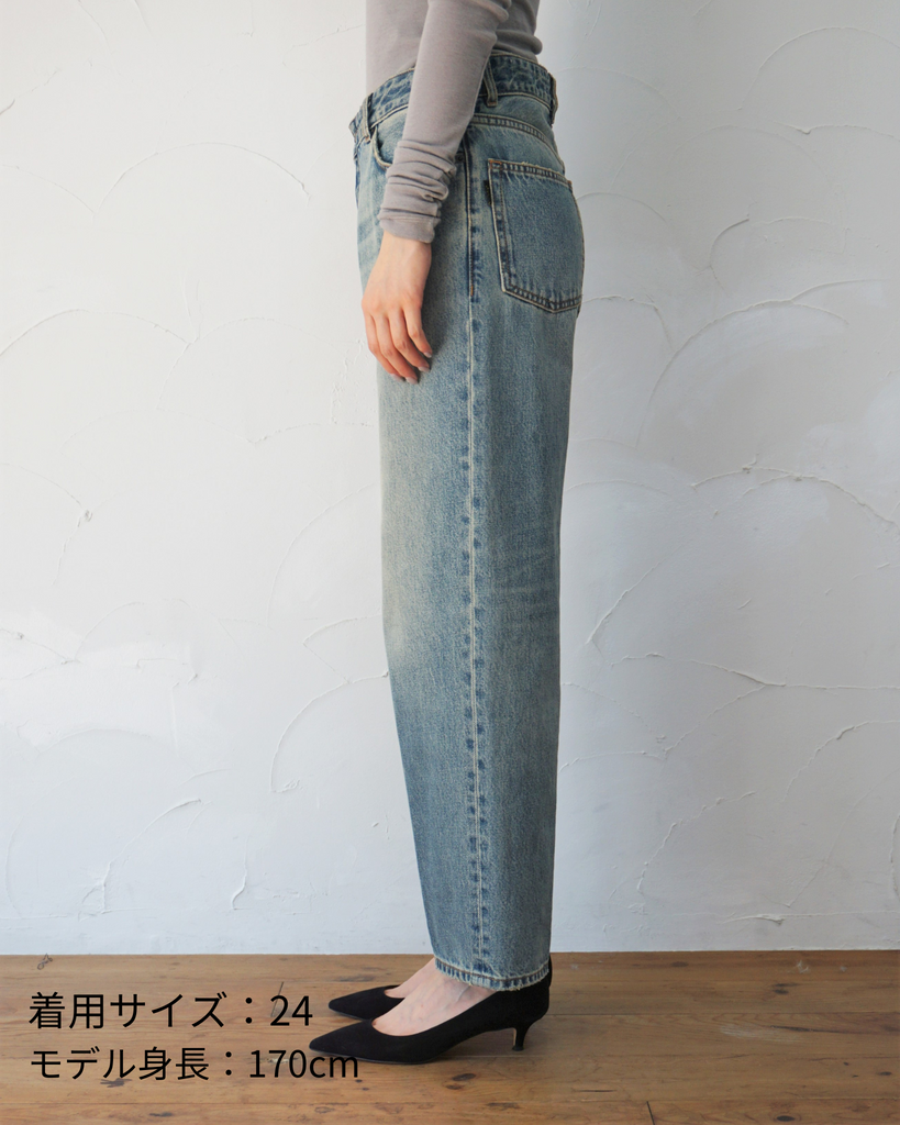 太ももはゆったりしていますが、ヒップは程よくフィットし、裾にかけてテーパードになったきれいなシルエットが特徴です。