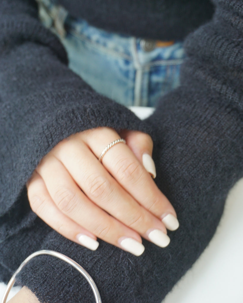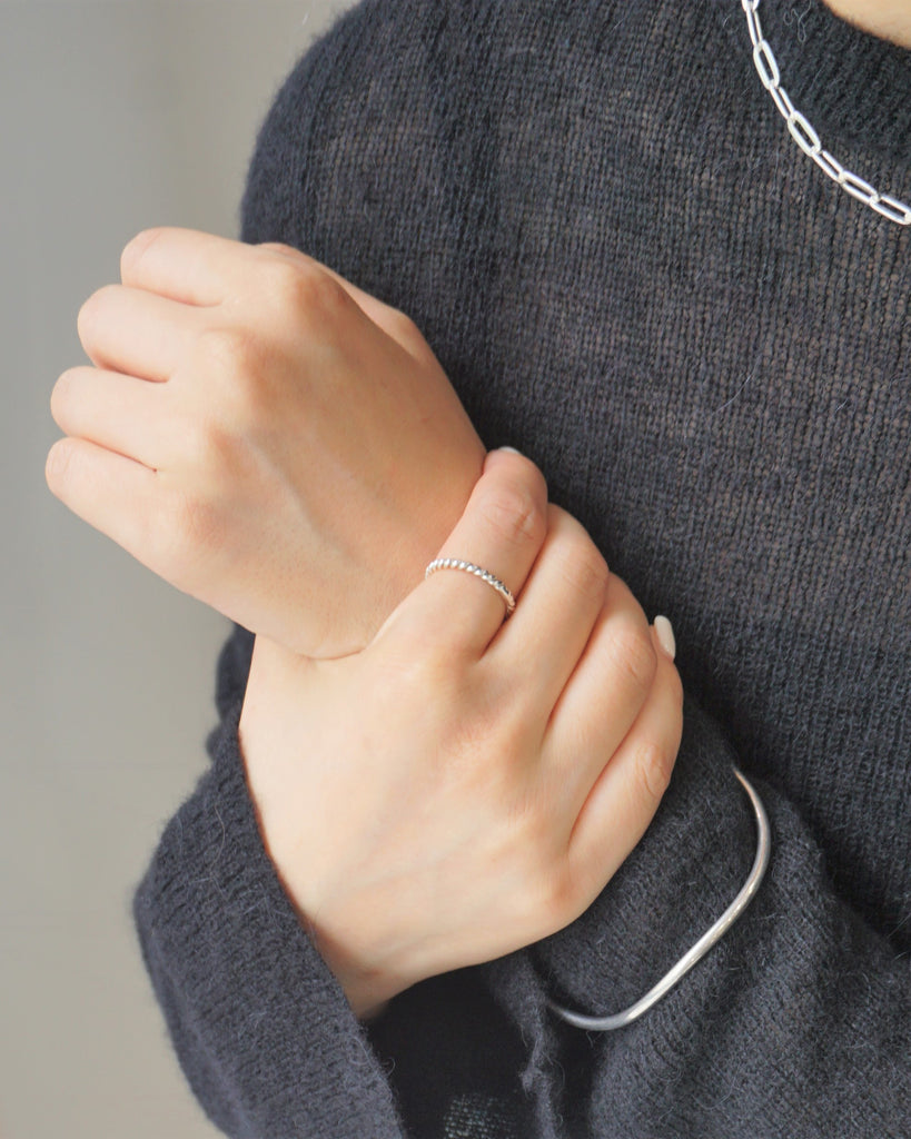 華奢なフォルムにツイストがアクセントになったつけやすいリングです。