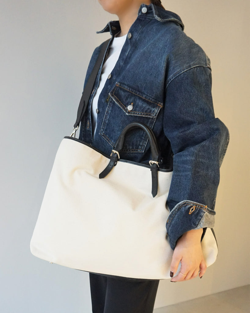 【RIEMPIRE】FRANCA 2way コットンキャンバス レザーハンドルショルダーバッグ NATURAL