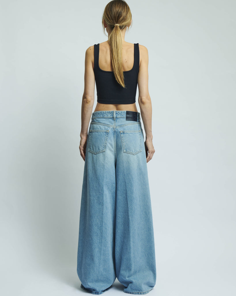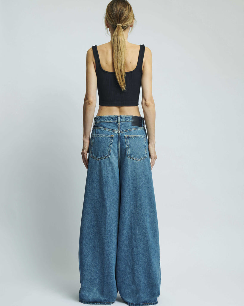 圧倒的なボリュームで、モードな存在感を放つスーパーワイドバギーデニム。 床にたまるほどのレングスと、贅沢な生地量が織りなす美しいドレープが、歩くたびに視線を惹きつけます。