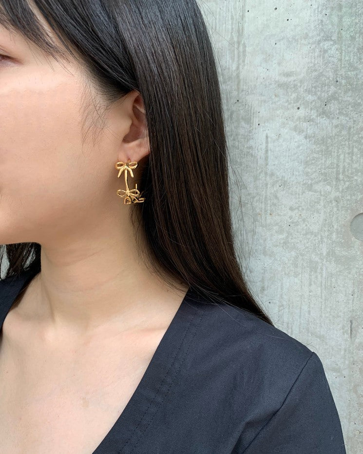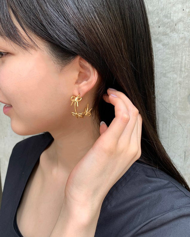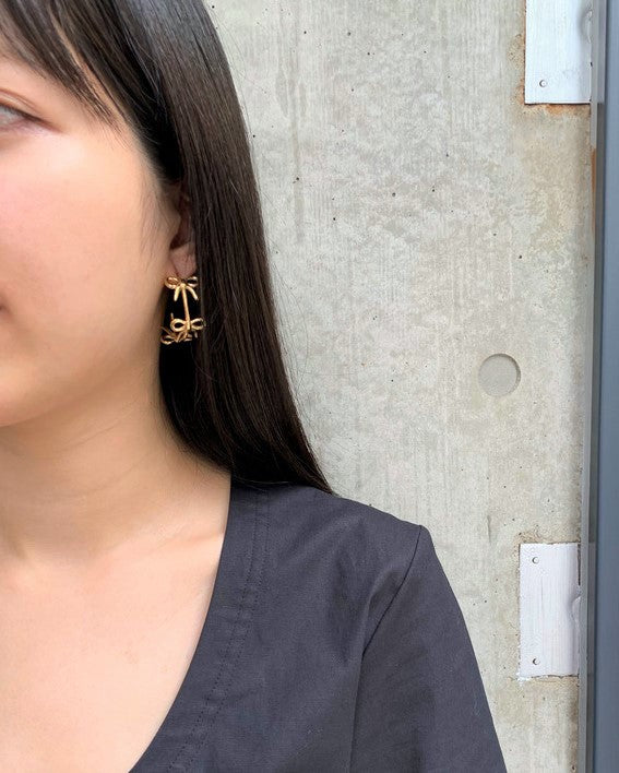 リボンモチーフでトレンド感を出しつつ、個性的で存在感のあるフォルムが大人可愛いスタイルを演出します。