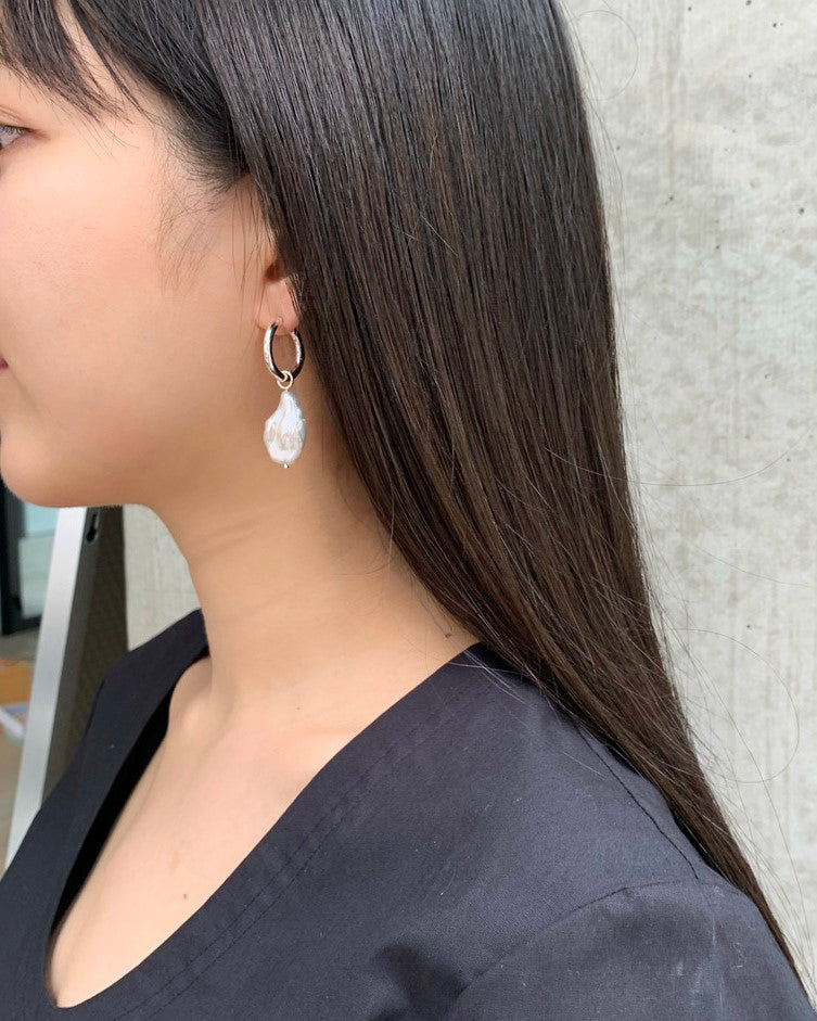 パールは取り外し可能なので、シンプルなフープピアスとしてもお使いいただける2way仕様となっています。