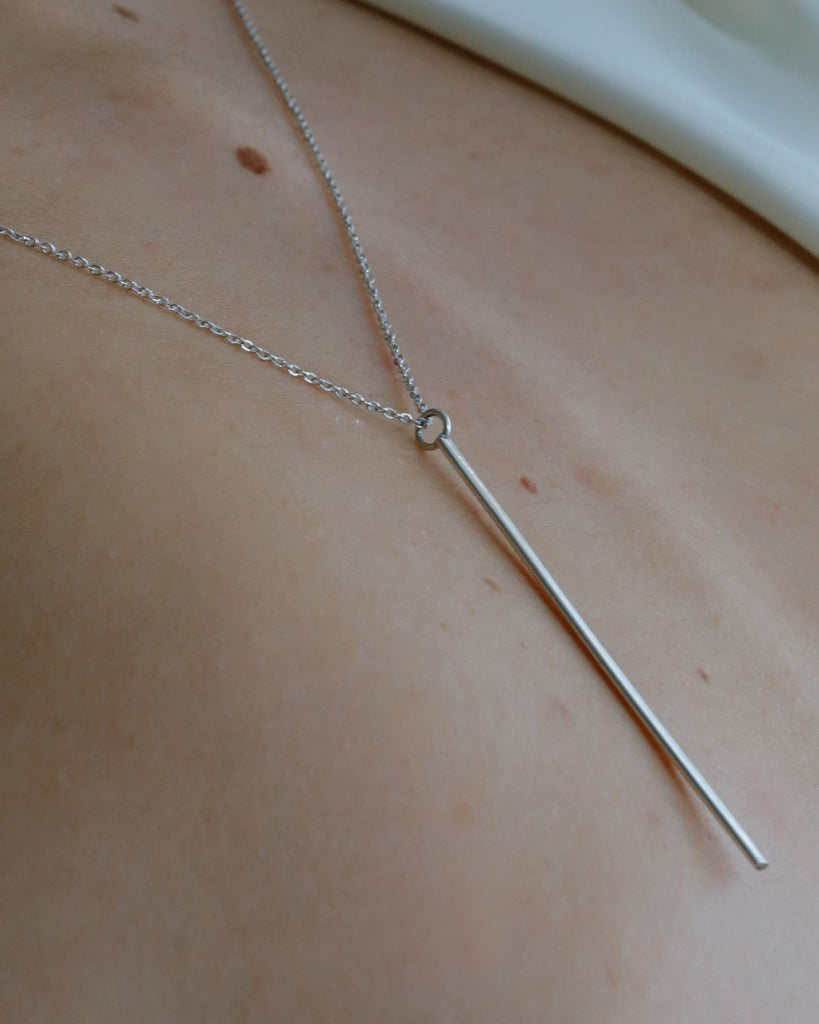 華奢で繊細なフォルムのシルバーが首元で輝くフェミニンなデザインです。